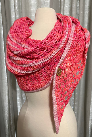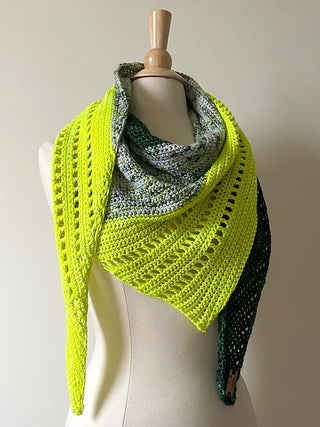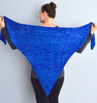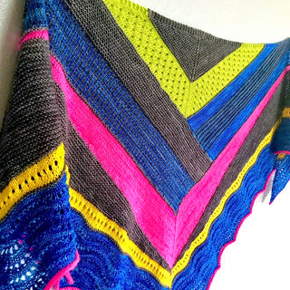 A symmetrical triangle shawl that you can fill with color. Available in knit and Crochet versions. Pattern by Michele Costa.
