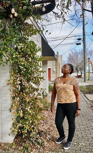 The pipirit is the Haitian-Creole name for the Kingbird, a Caribbean tiny bird. This top’s name was chosen by Elisabeth after her sister mentioned how the Tunisian knit stitch reminder her of the bird’s footprint. It’s so fun to picture this cute little bird hopping around, creating this pretty top!