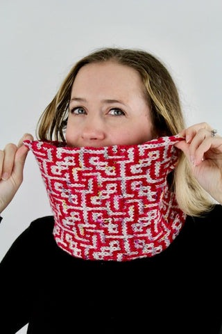 A mosaic knit cowl design by Megan Gonzalez