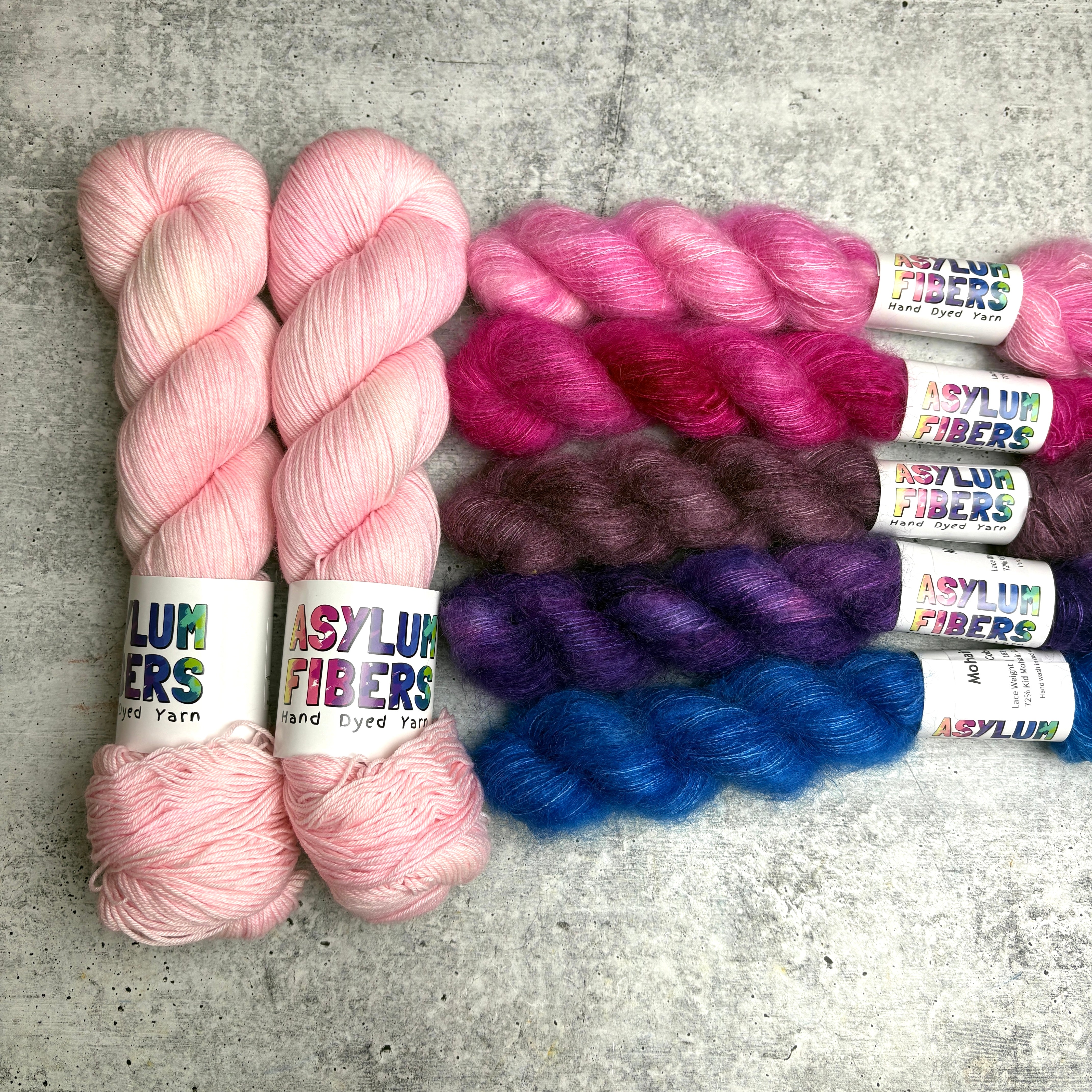 Mohair Mini Colors: Bubblegum, Jazzberry, Vino, How Noble, Cobalt