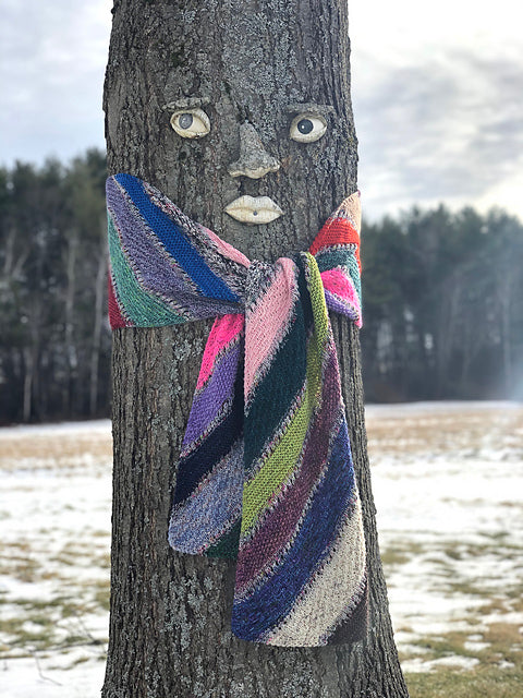 The yarn used in the pattern sample pictured was the Asylum Fibers 2019 Advent Calendar, in Merino Fingering. 1 full 100g skein and 24 20g mini skeins of fingering weight yarn are used to create this giant scarf.